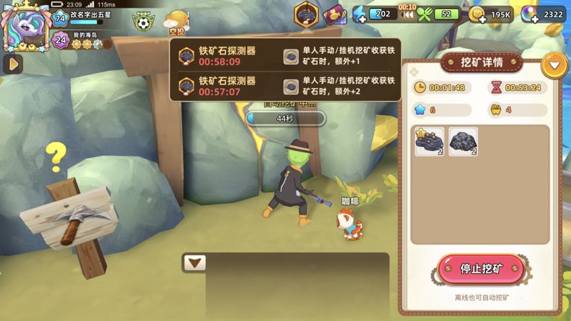 接下来我在开一个一级探测器,挖一下却变成了两个矿。