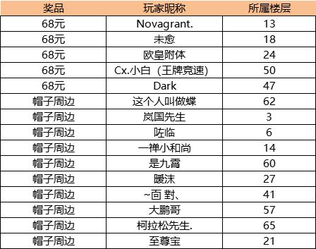 恭喜以上幸运车手中奖!~车手们可以在【个人中心—回复栏】查看自己的楼层数,另外西理会将奖励领取的方式回复在中奖楼层之中哦!(7个工作日内没有联系工作人员视为放弃奖励)