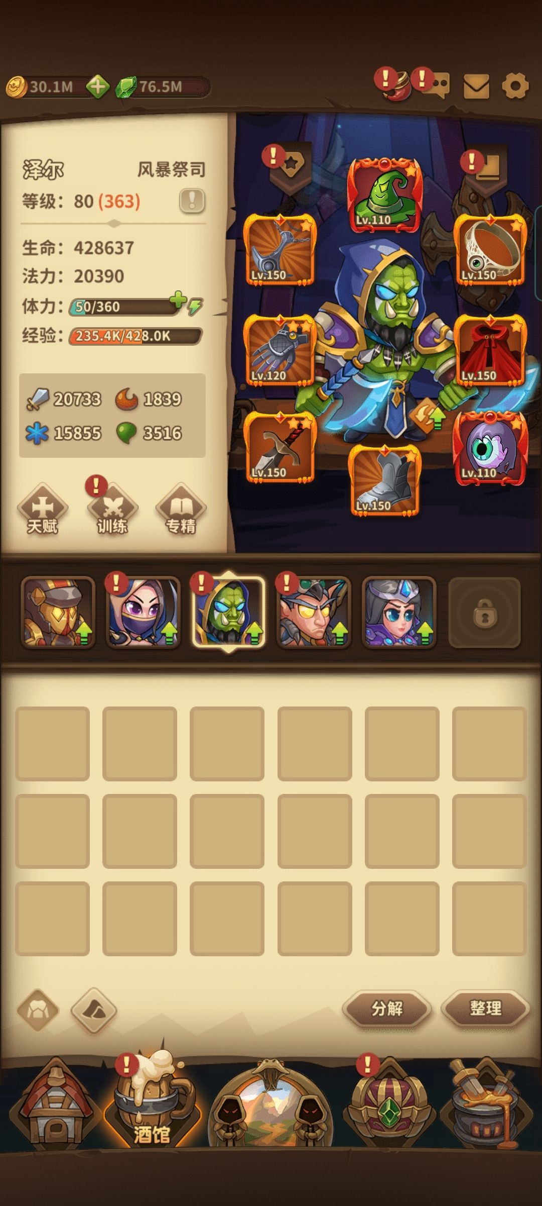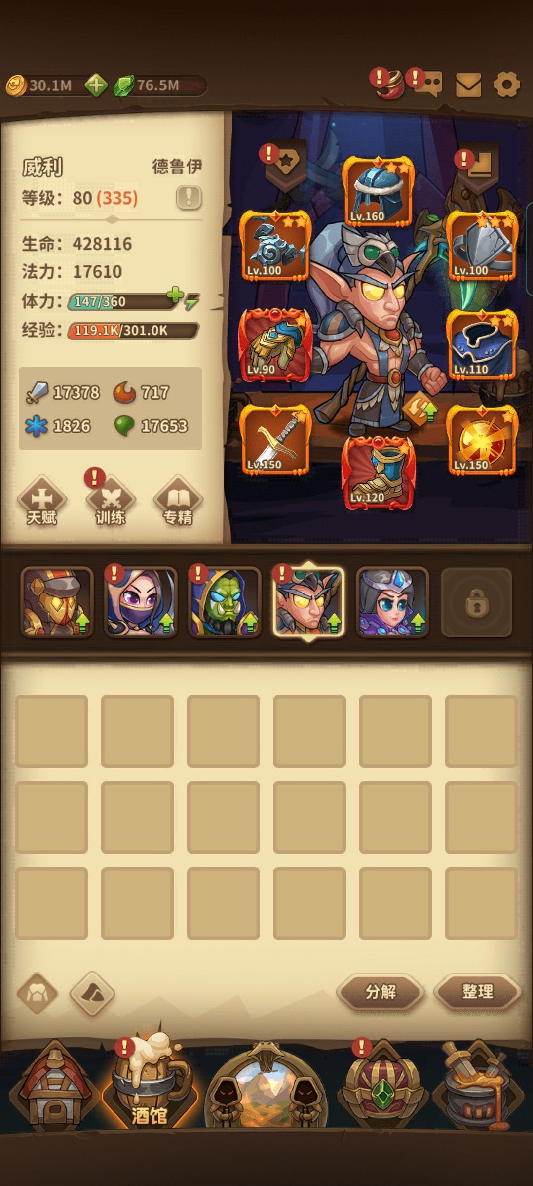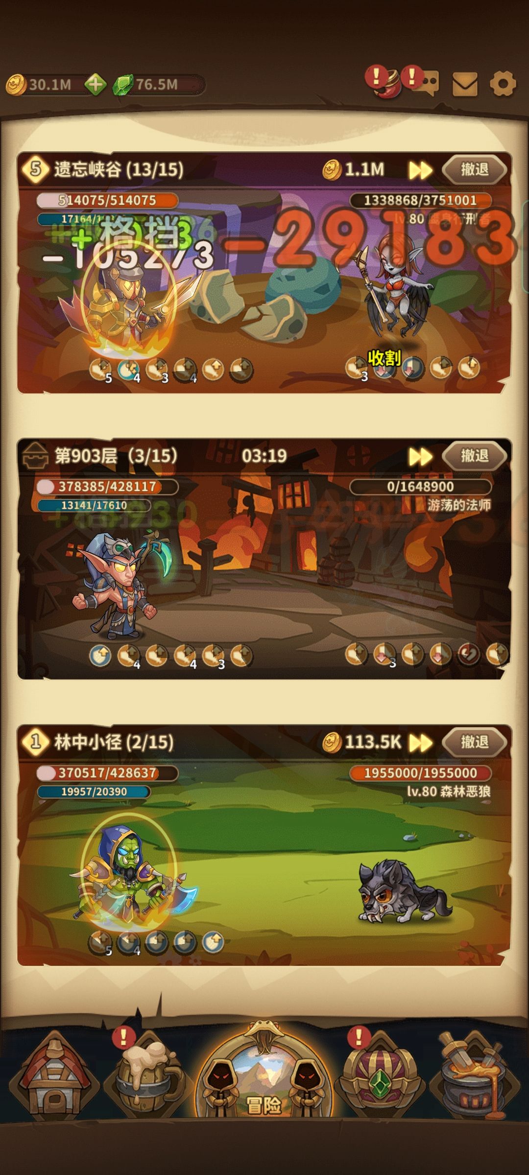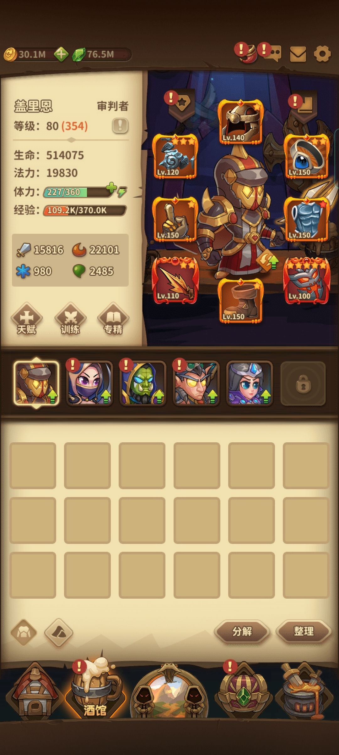 训练的话,前期把审判堆满,有的多就把其它几个提到40级训练开三皮肤就够了,后面审判乏力想练哪个就提哪个,比如困难24的关卡怪物是你格挡它刷盾,直接把我审判德鲁伊废掉,还是靠祭司闪避过去的。