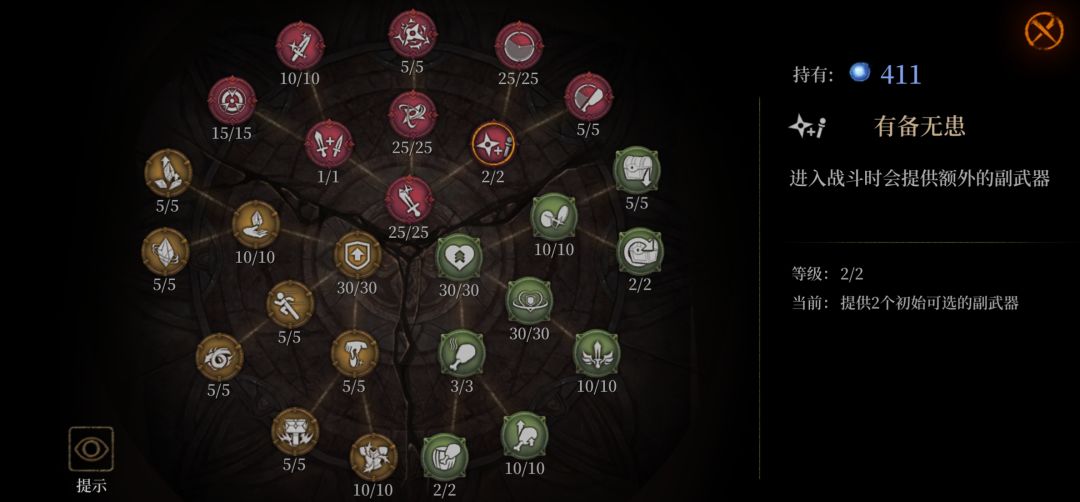 1.第二选择和有备无患。这两个天赋是开局会提供两把武器和两个副武器选择,选择性更强,可以随意搭配。