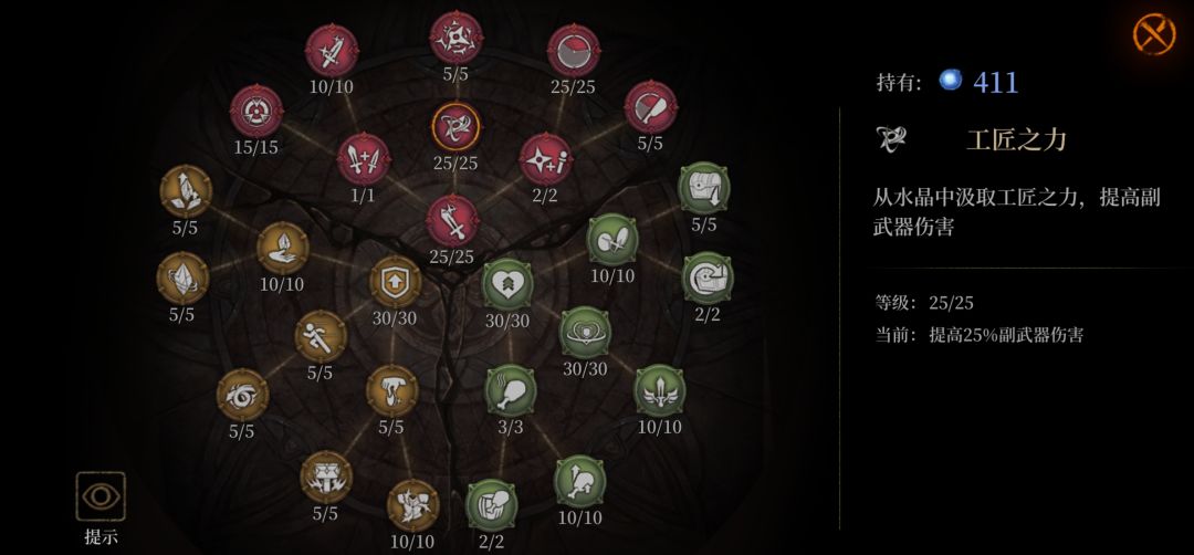3.幸运恩赐和工匠之力。相信大家都知道,打到后期我们可以体验秒boss的快感,而这种秒杀大多来自副武器的强大,所以提升副武器强度是后期必不可少的!