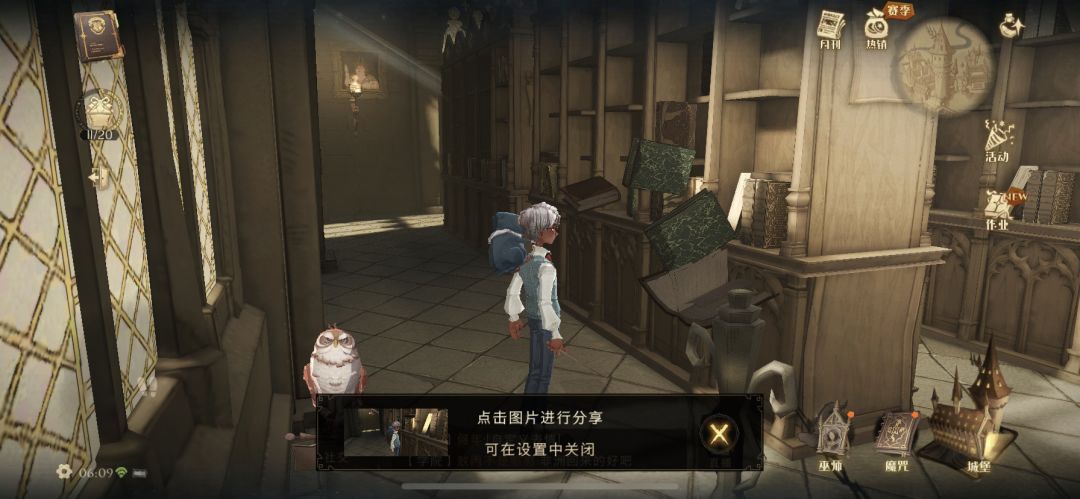 进入魔法史教室后,在前方右侧的桌子上找到一本红色的书,点击即可领取一张迷雾卡牌、十钻石、100金币。