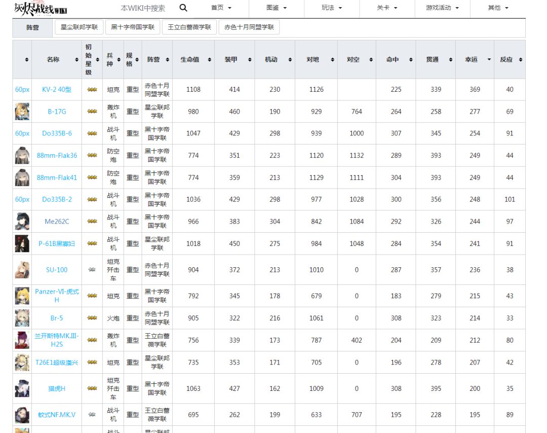 再给大家看一下按照幸运值排序的wiki资料