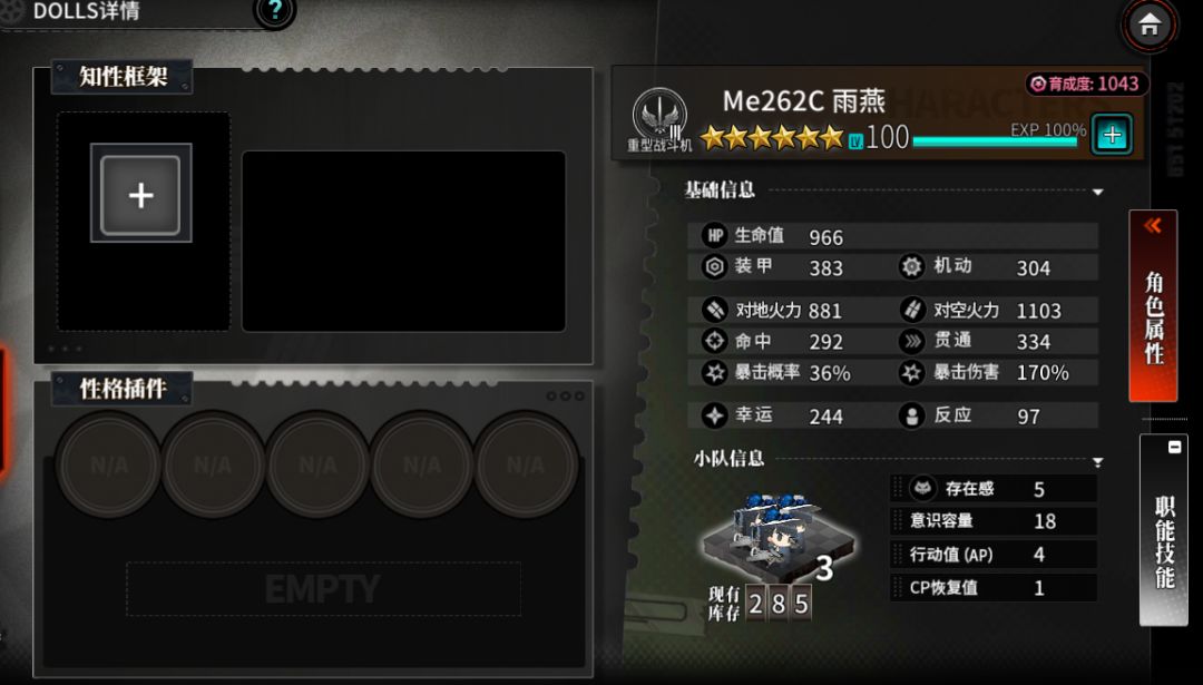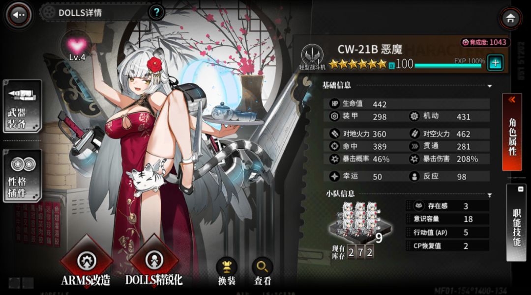 目前重型dolls的幸运值远高于轻型dolls,这里拿雨燕和恶魔的无插件属性做基础属性对比