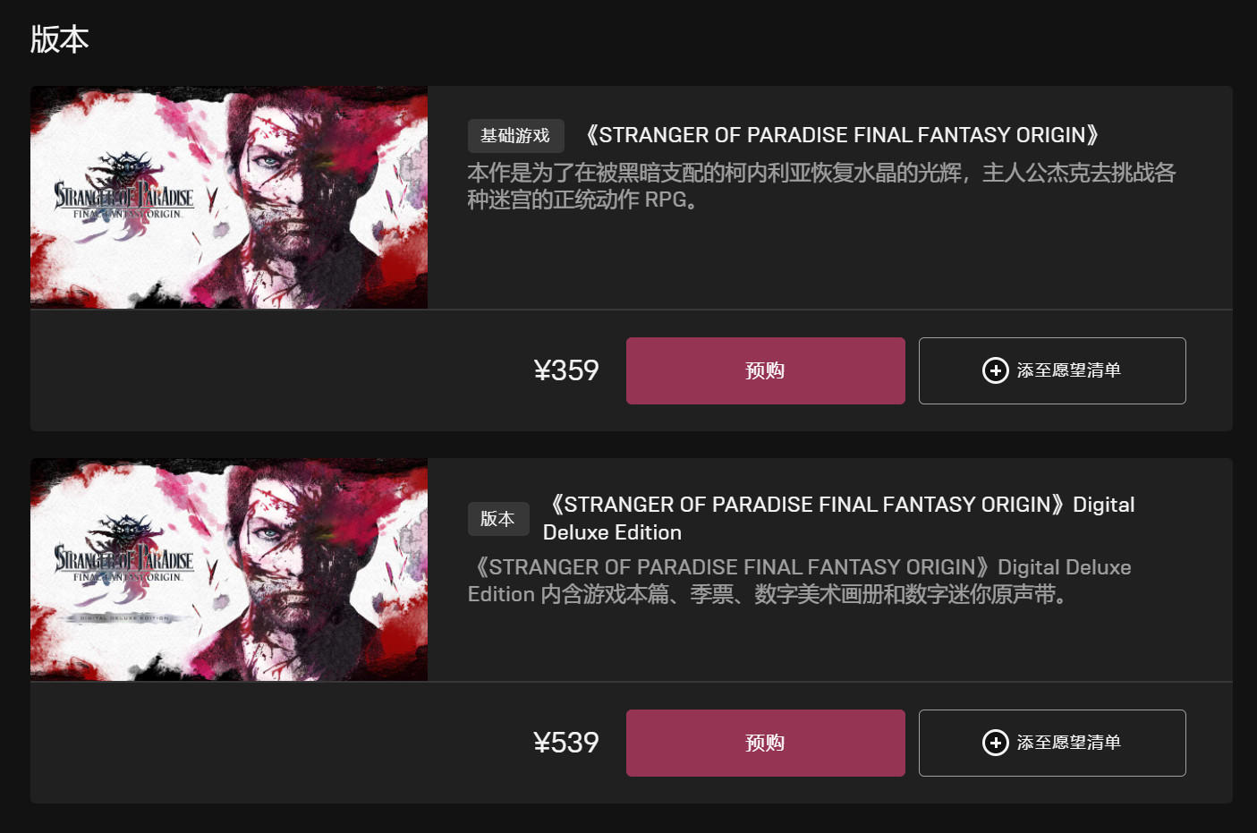 Epic预购地址:https://www.epicgames.com/store/zh-CN/p/stranger-of-paradise-final-fantasy-origin?lang=zh-CN