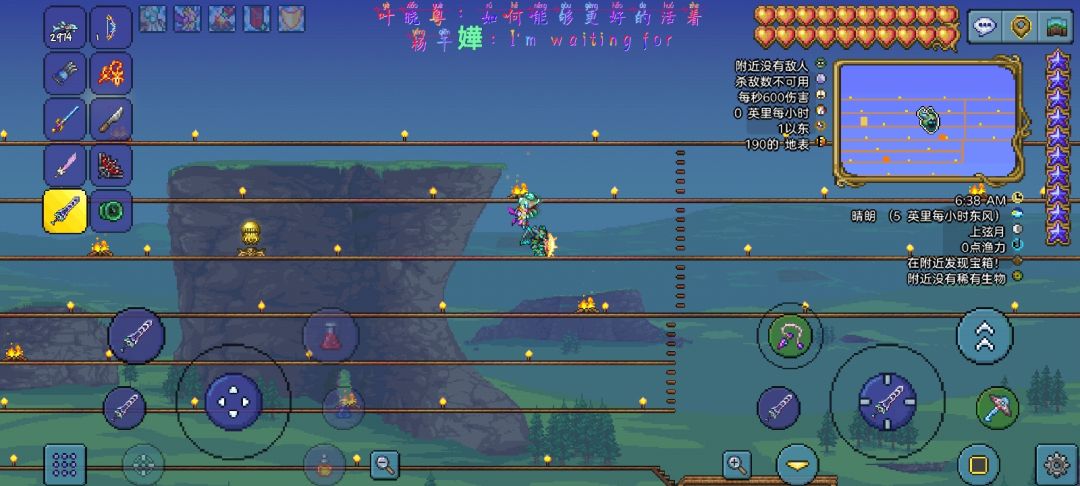 打骷髅王之前蜂蜜弓和剑在弄个蜜蜂召唤物老样子搭平台不过这次用弄的大点专家和大师被骷髅王打中会有减速效果和注意别被头撞可以用史莱姆坐骑头来撞你的时候可以跳到骷髅王头上主用蜜蜂弓输出想打双手双手没了就随便打了机械的同理不过有4个手