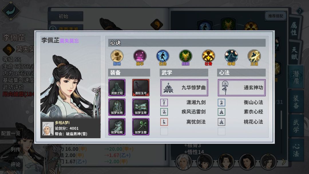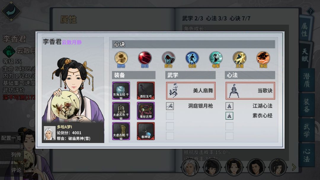 通玄琴师姐 带如梦套装 武学至少1突才能用 师姐悟性要237 开局大招起手
