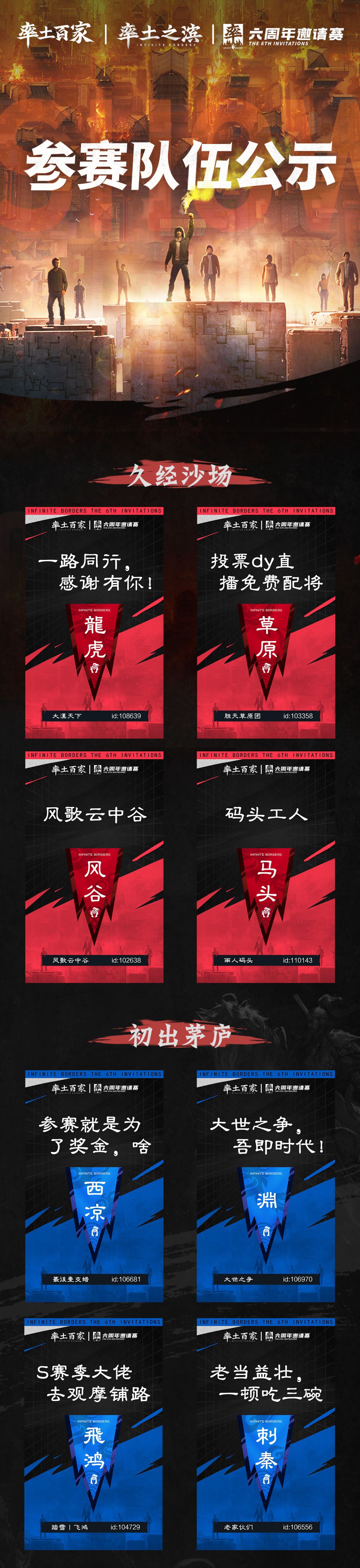 率土百家·六周年邀请赛参赛队伍公示