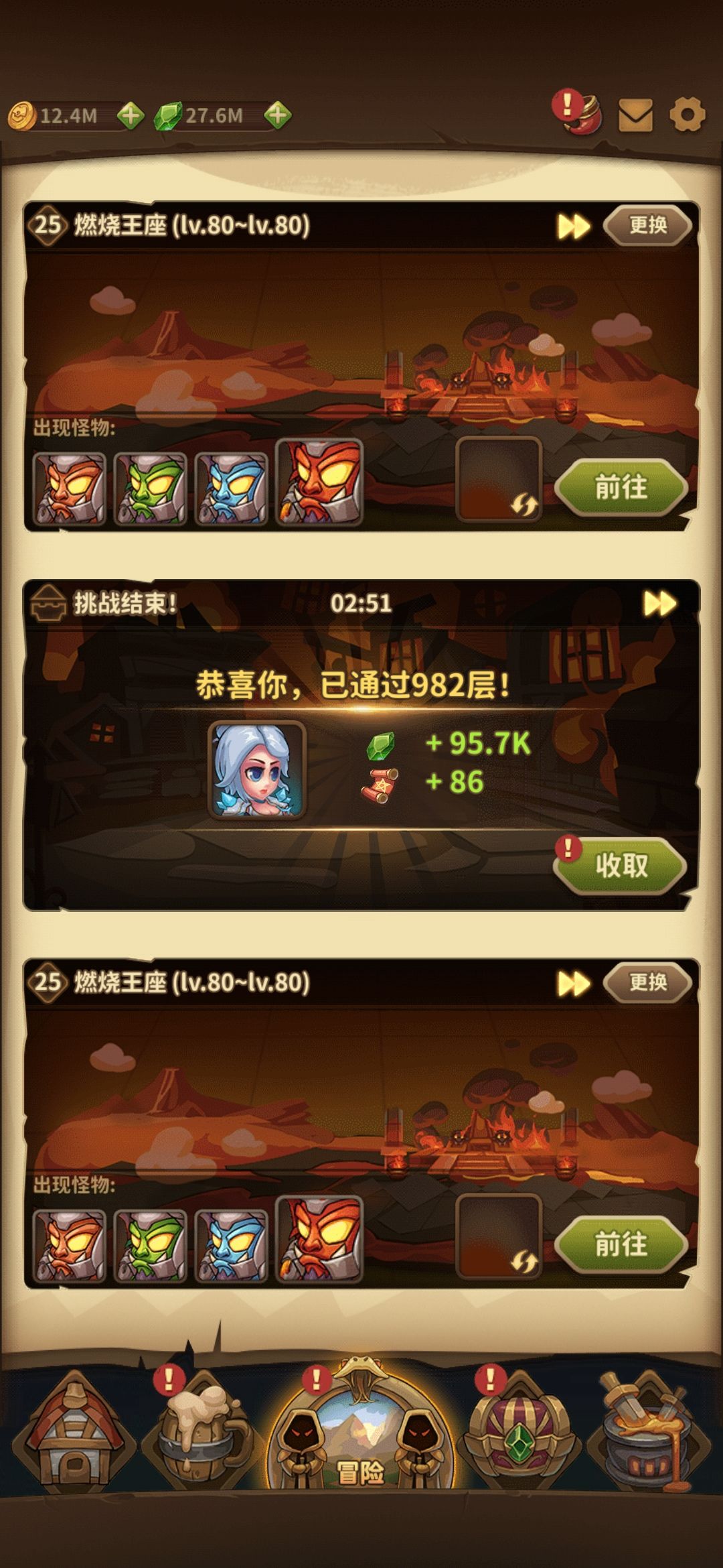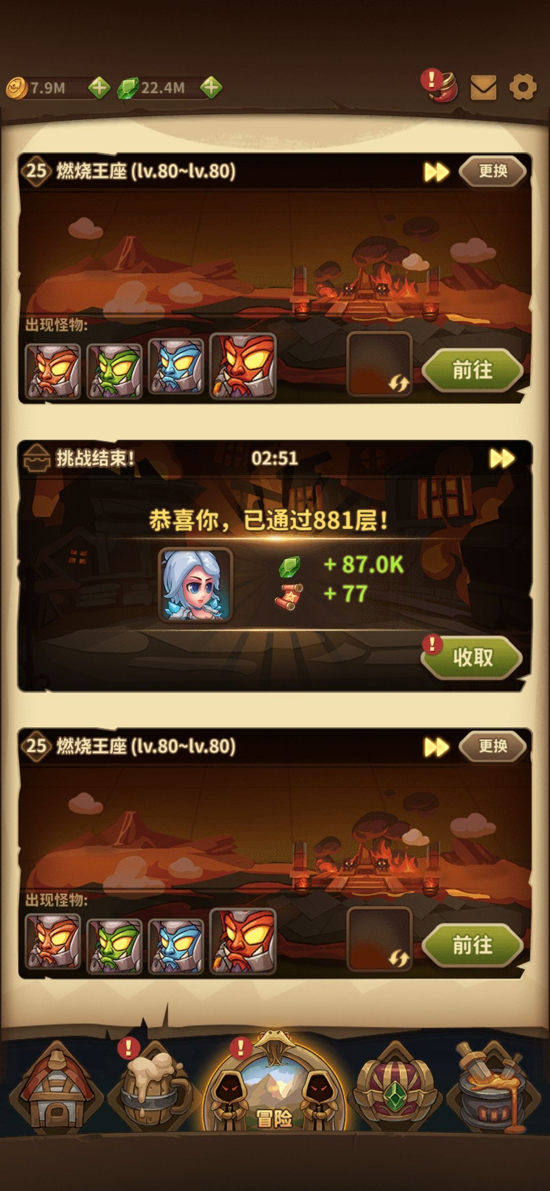 3.第一个英雄领跑,其他英雄优先爬塔,卡层再升级,一般40-50可以爬到100-200不等,第一个英雄打通25层优先爬塔。原因: