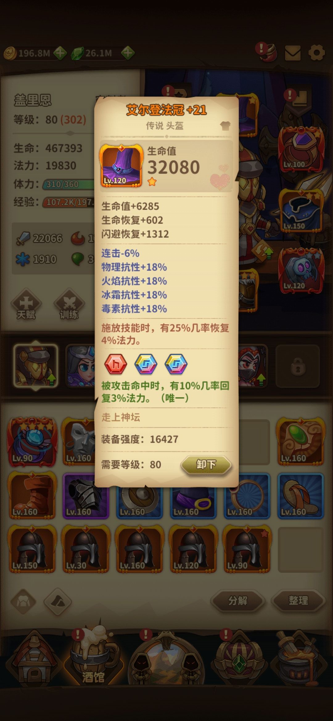 【其余闲鱼装备参考,技能一览,主力审判,火巫,冰法,另外两个不用看,1500层以后刷塔费时,加速一个1分多,1800以后打不过了,暂未研究】