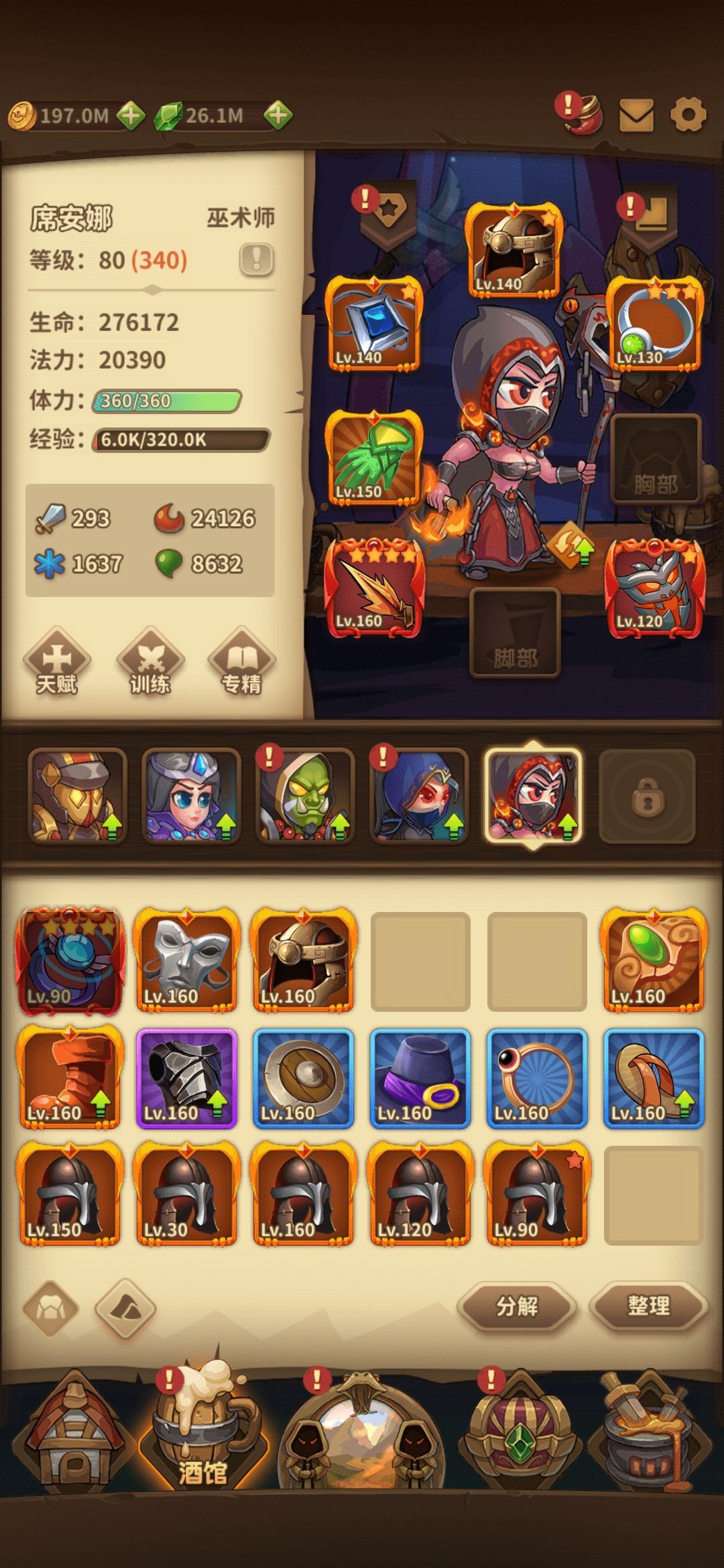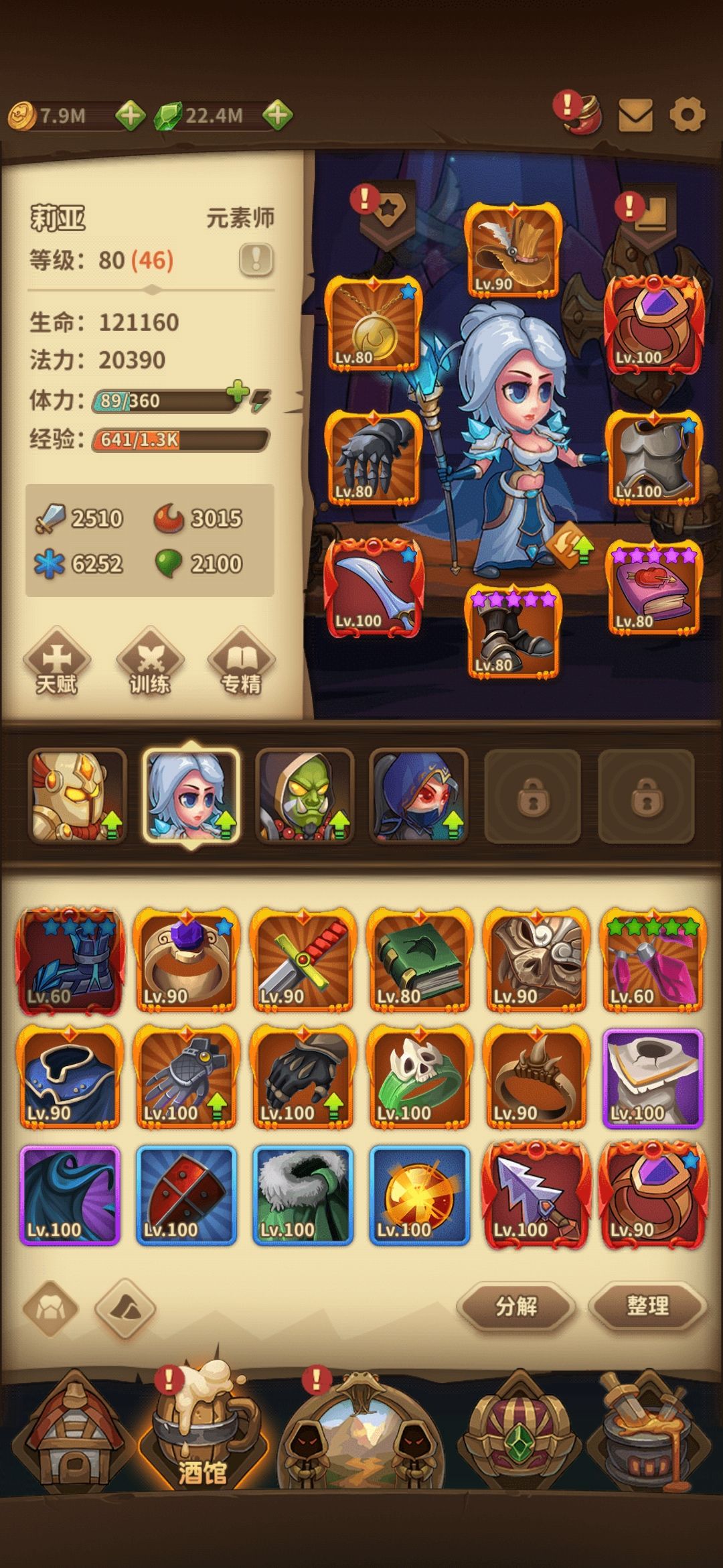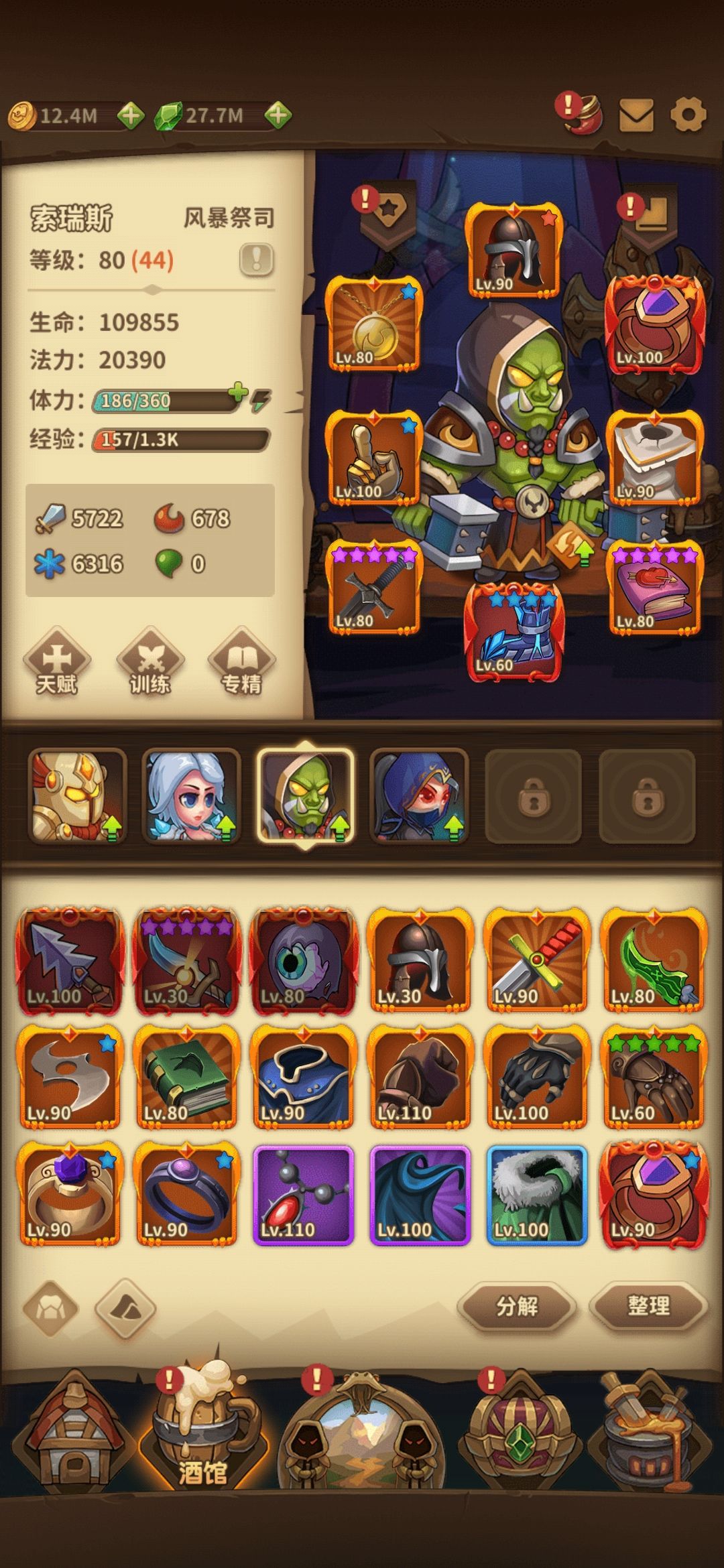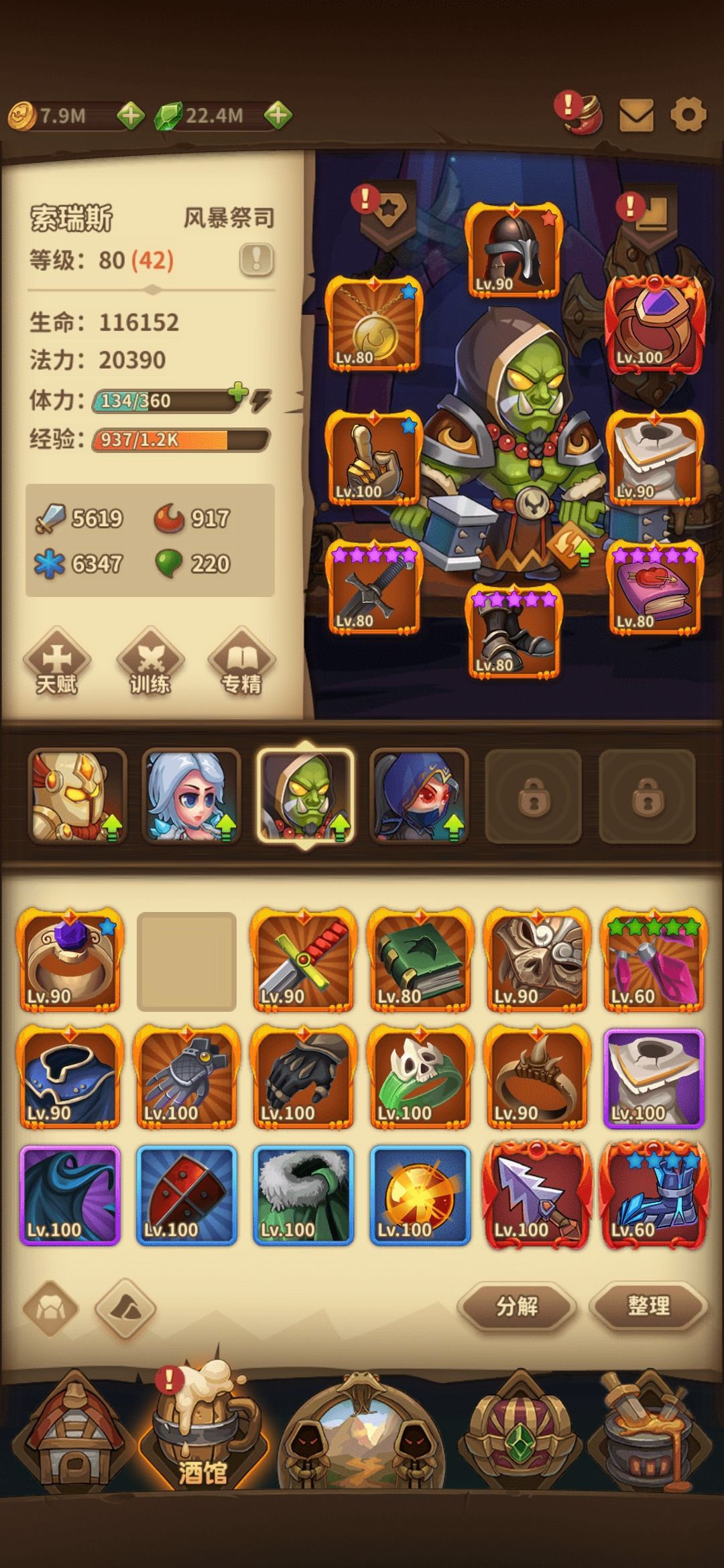 酒馆-皮肤以主力一个发育,目前训练主力114级,其余60-59-37-41无需刻意,每隔30级在发育主力套装的时候顺带就行。