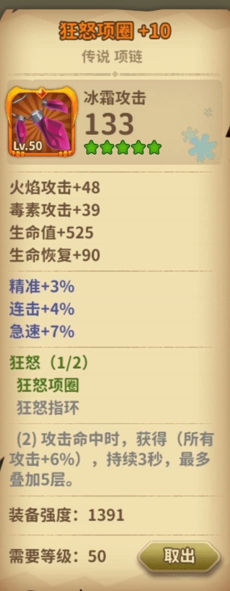 2.前期神装——百分比加攻击,800以前的塔都没有记录了,全靠狂怒套刷的;