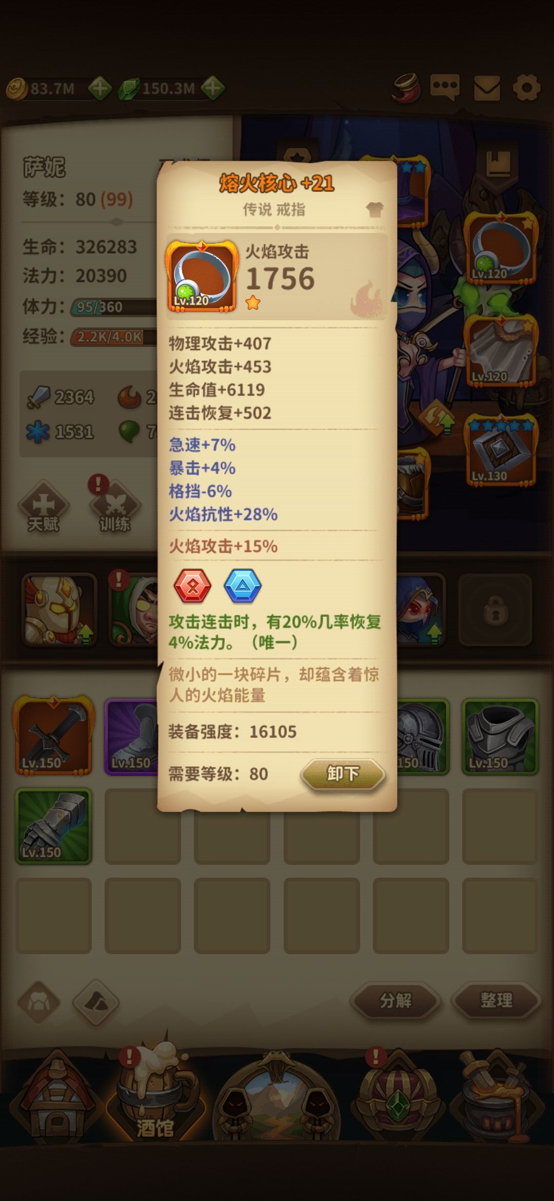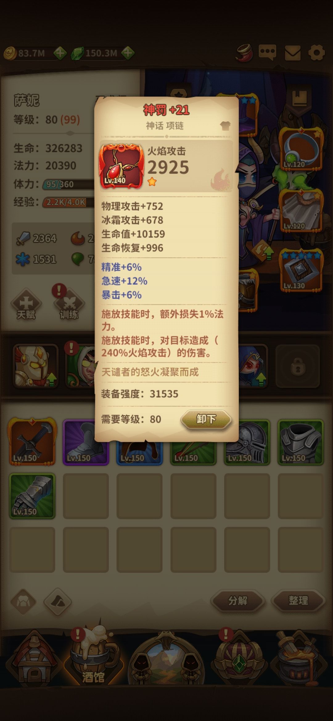 主要靠火巫推,下面分享火巫实战型出装,记得收藏!这套装备输出暴力,还能抗,几乎无懈可击!因为才玩8天没体力刷众神,所以装备没洗炼,但是不影响推图,因为输出太爆炸不需要洗练,穿80的部分装,直推800层!上装备图和技能