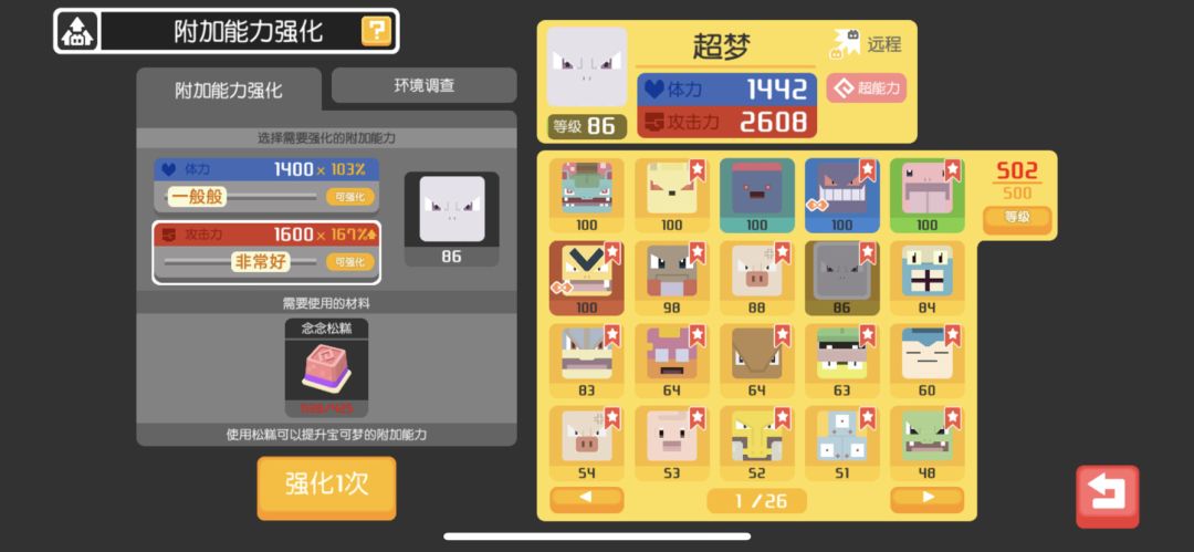 煮了这只超梦,方石没问题,宾果稍微能用。攒了7000来个松糕连攻击力都拉不满,接着慢慢攒吧。