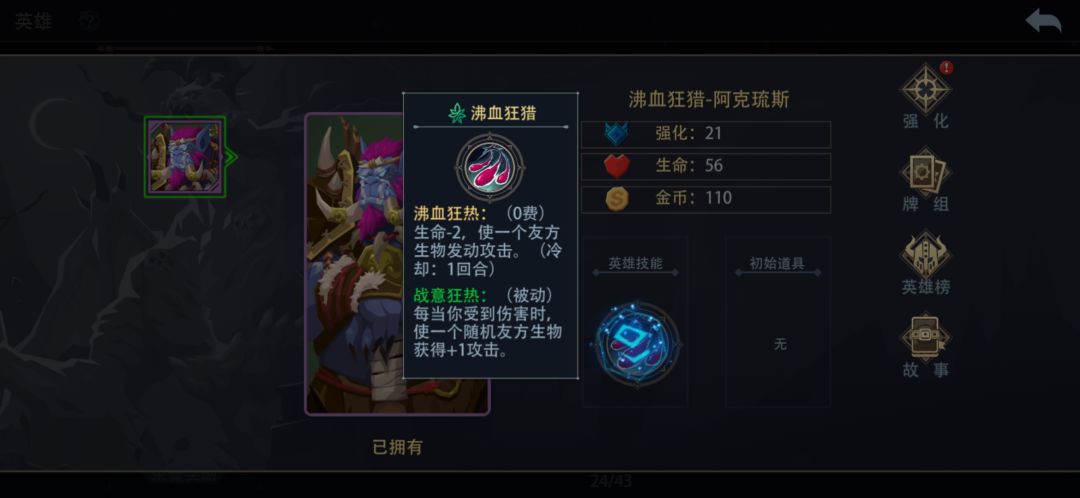 主动:(0费)-2生命,使1个友方生物立即发动攻击。(冷却1回合)