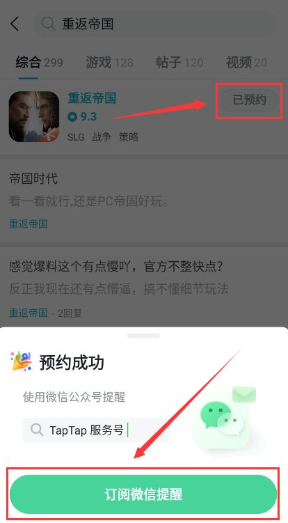 进入TAPTAP,搜索"重返帝国",点击预约。