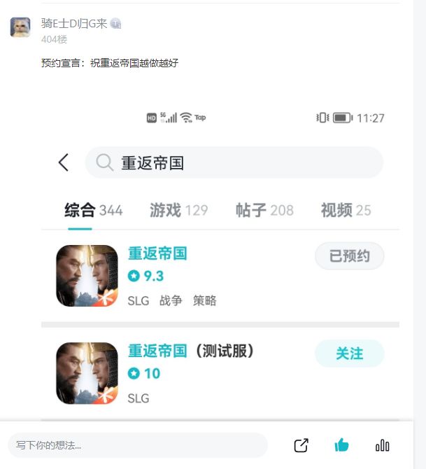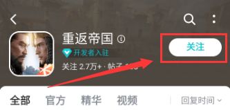 点击论坛,并点击关注《重返帝国》TapTap论坛