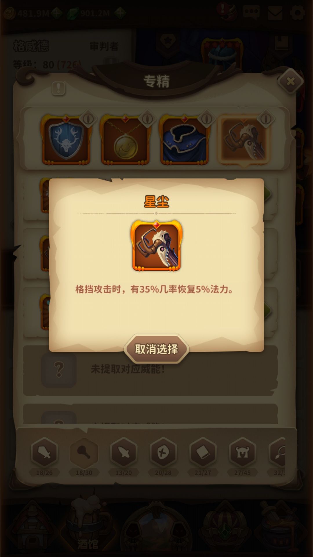 格挡很高的话武器可以换其他需求属性,比如:暴击,暴伤;抗性,韧性;或者回蓝的格挡棒子(根据需求一般我都放专精里)。