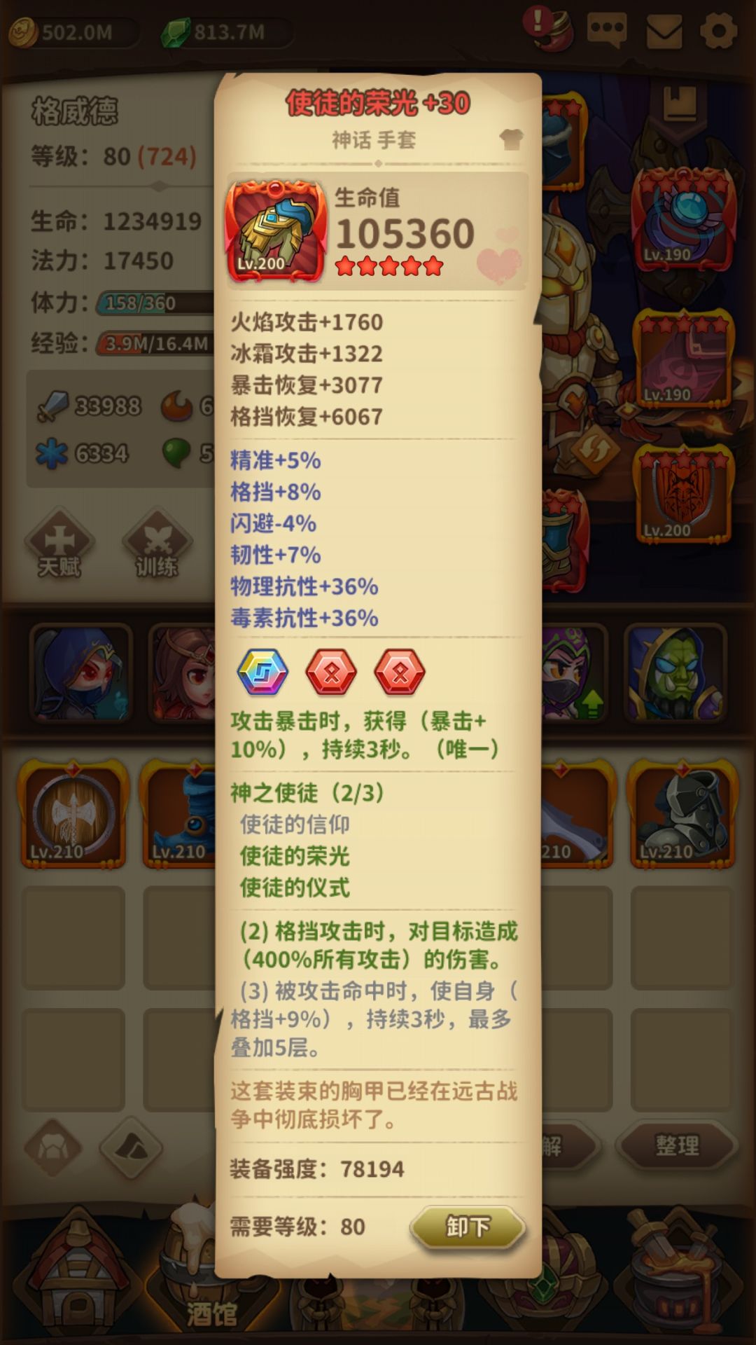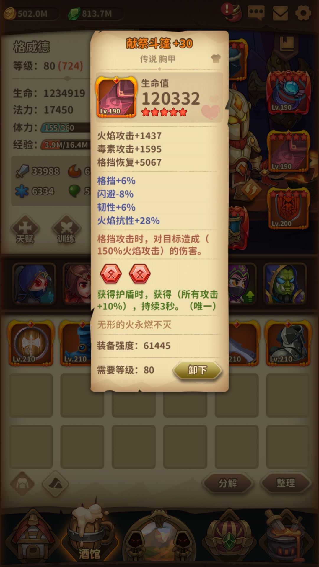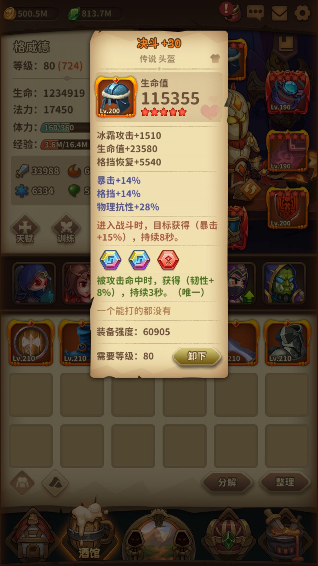先上成绩才有发言权。目前所有英雄装备在200级或者以下,210装备都放在训练里了没有强化。冒险刷到地狱24,因为克制格挡英雄所以没过,比较遗憾其他属性英雄没怎么玩。梦境之塔已经到新版本1501可以刷220装备,省了210一笔钱。无尽之渊刷的少,都给其他英雄扫荡了,才到71层。今天周六众神试炼刚好刷新,一周用闪避冰贼或物祭司+格挡火审判+格挡毒德鲁伊可以刷到89层。之前玩的少,最近接近两个月才一直刷,有不足跟缺陷请各位兄弟提点一下。下面开始正题!