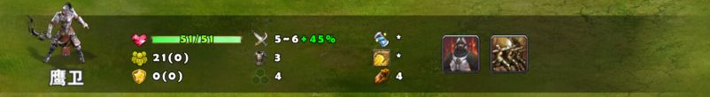 鹰卫:攻击:5-6+45%,血量:51,防御3,速度4