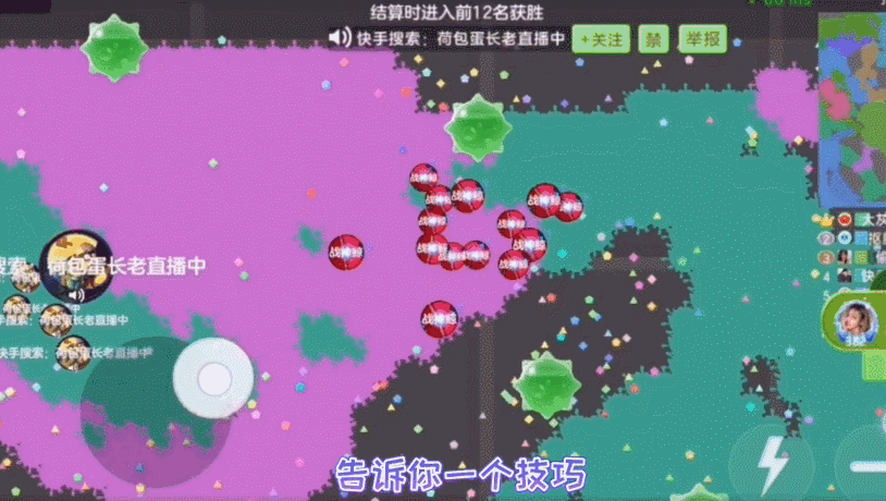 告诉你一个技巧,没有敌人的十六分分身扫区域是最快的哦!炸刺的时候会直接渲染一大片区域,不过分身过多容易被别人吞噬,这个度还要球宝自己体会。