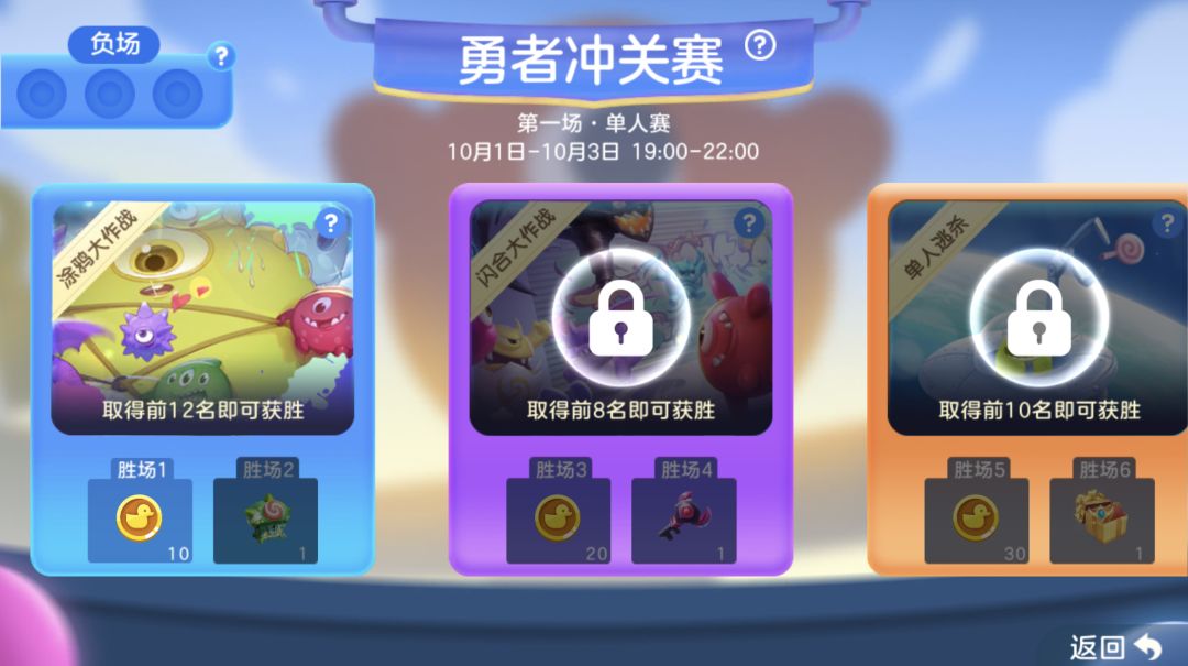 单人赛模式有涂鸦大作战、闪合大作战、单人逃杀三种,只有完成前面的关卡才可以进行后面的关卡哦!每赢一场都会获得奖励。