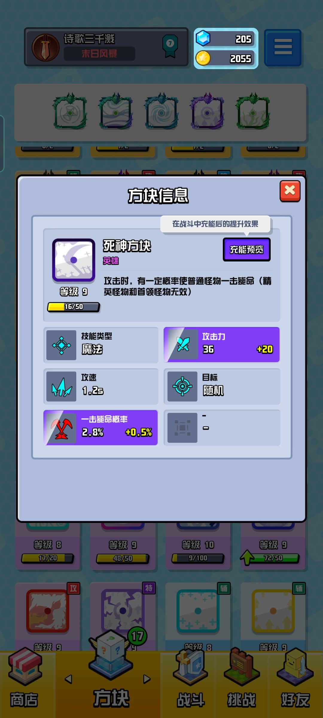 一击致命就是即死效果,不管有多少血,直接杀死(重点,精英怪和boss除外)。但是由于低等级的死神方块触发几率太低了,所以现在还是不要用它辅助。等有人把它升到十二级以上,可以尝试一下。这个方块高等级时,比地狱方块(传说级)更推荐。