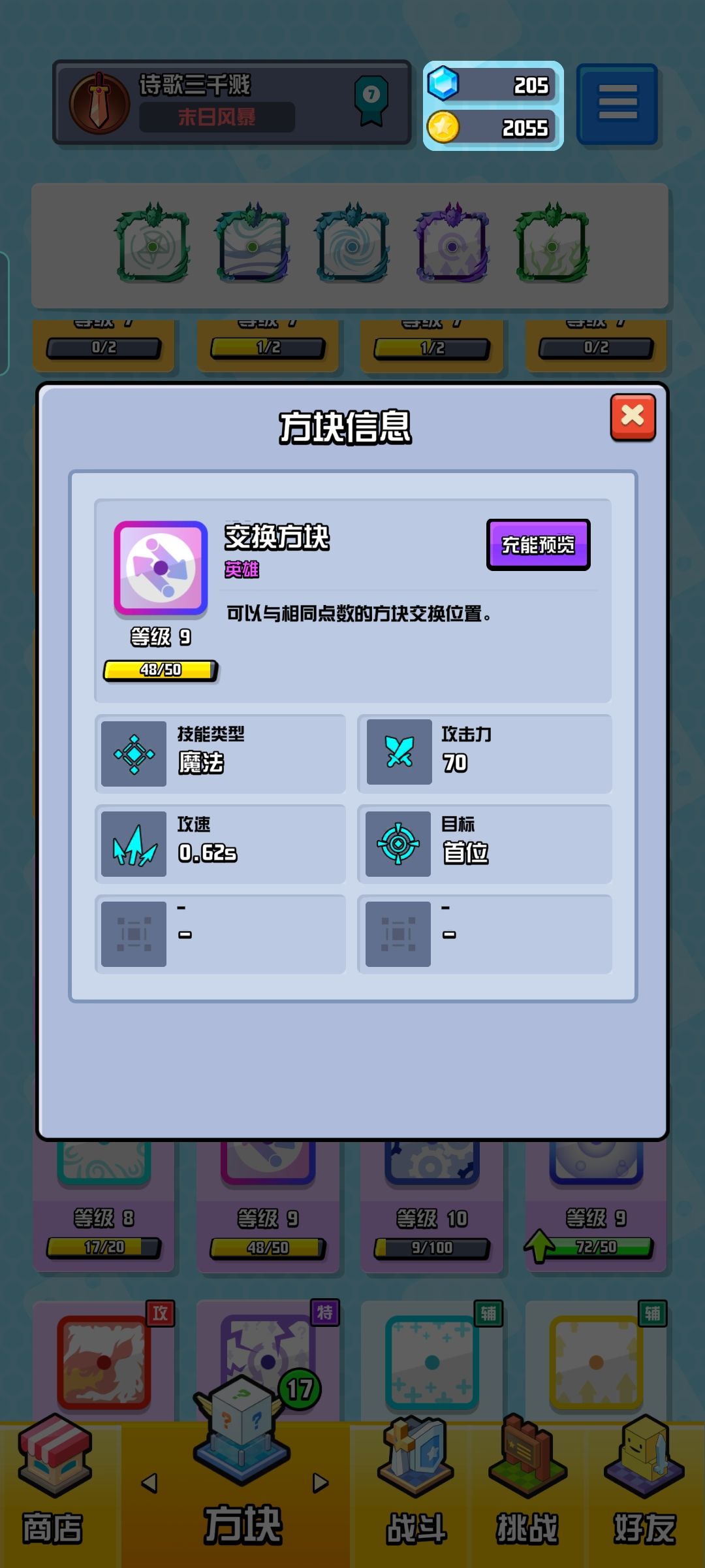 这个方块的好处就是能更快的摆阵型。但是后期占位置,毕竟场上只能有15个方块。