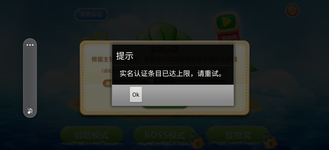 实名认证的时候现实实名认证条目达上线