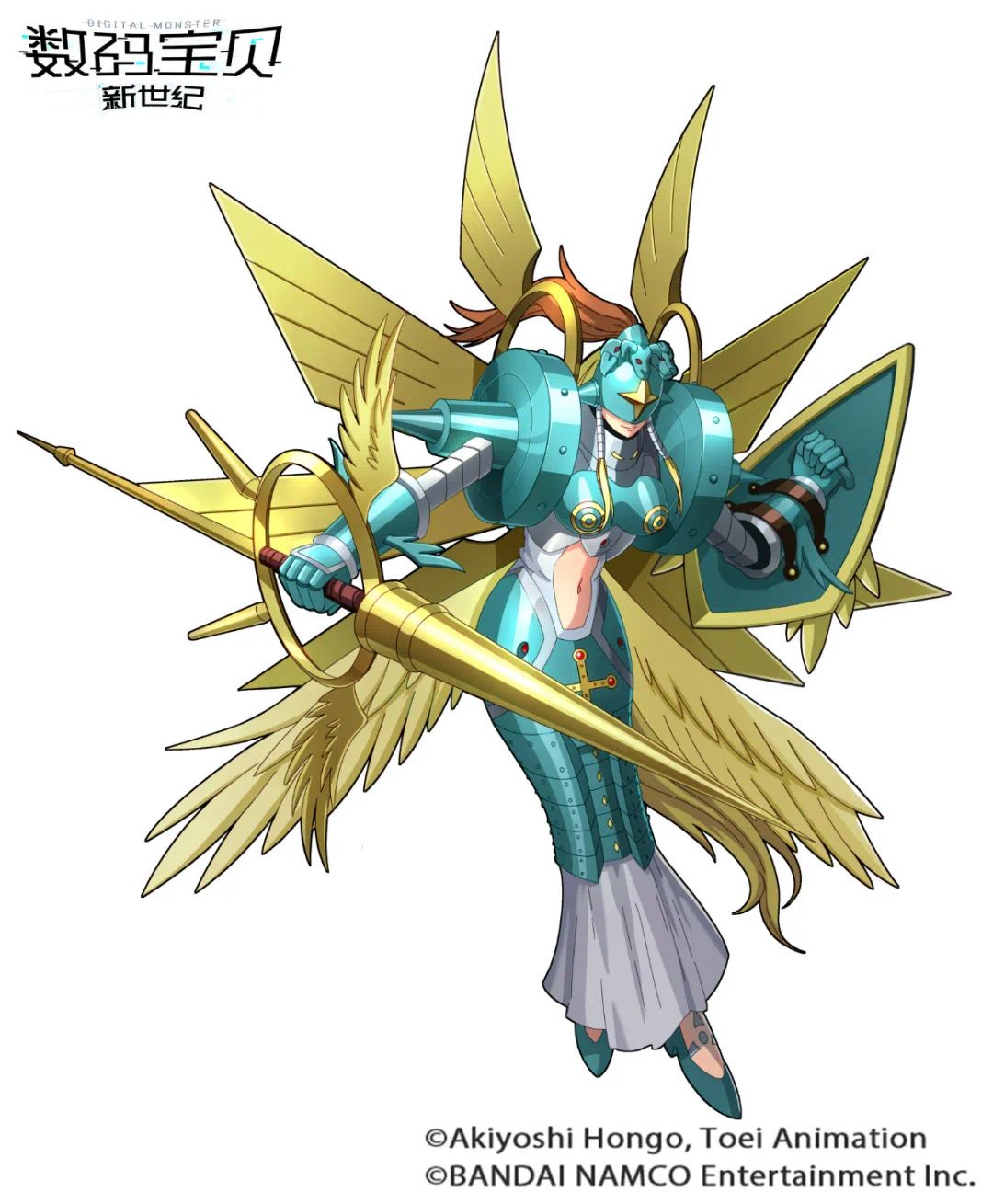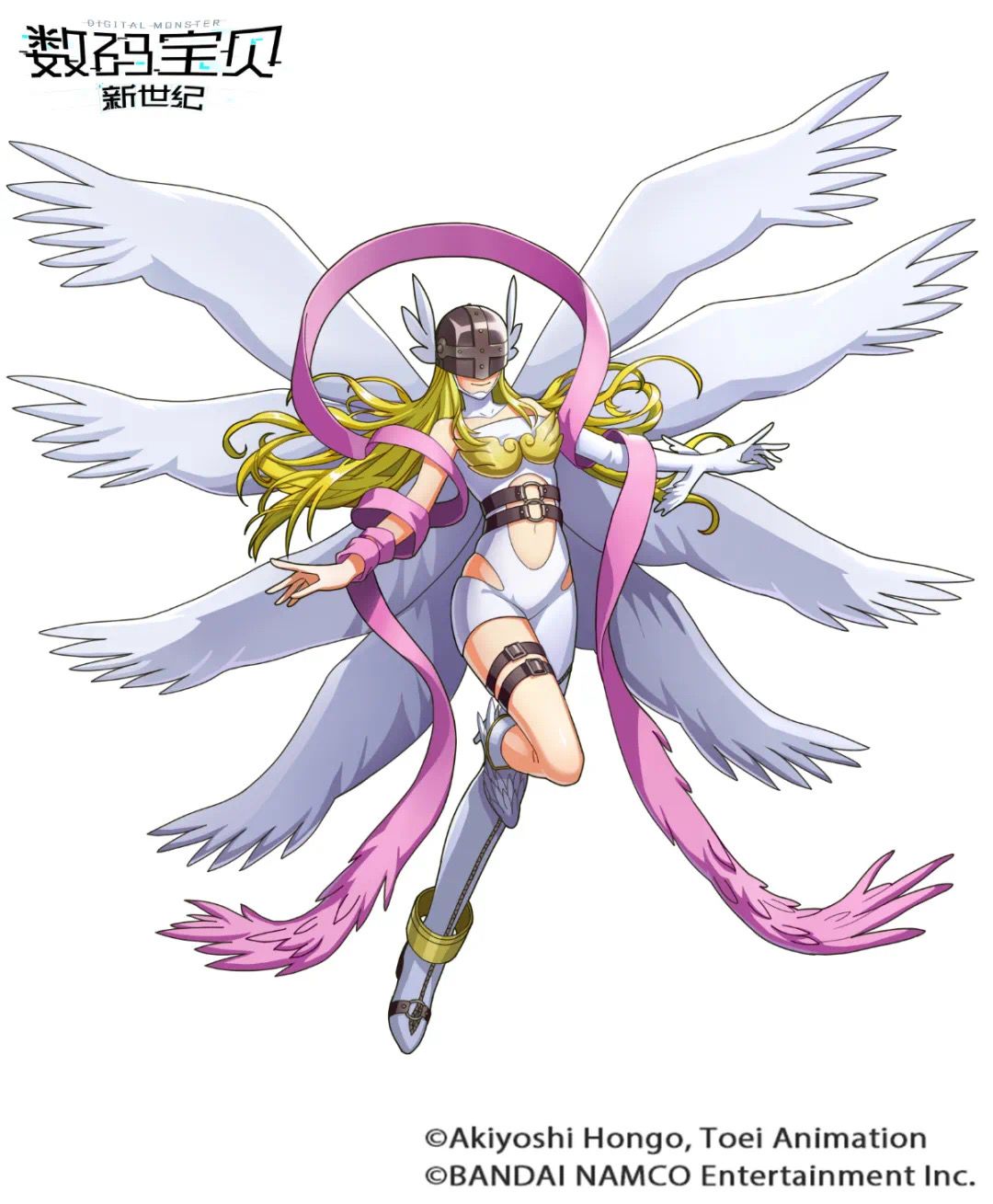 拥有美丽女性模样的大天使型数码宝贝。以前被归类为天使型,但由于其能力之高,被判断属于大天使型。特点是成熟期天使拥有六片羽翼,完全体天使拥有八片羽翼。性格相当温和,但不能原谅任何不公或恶行,在对方洗心革面前绝不放缓手中的攻击。因其精神与力量,被誉为数码世界的女神。