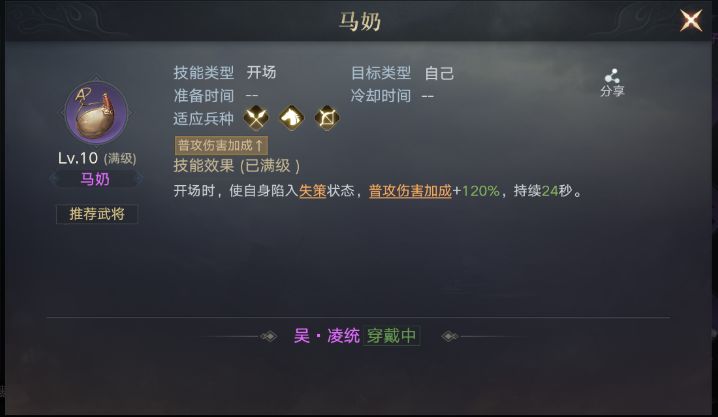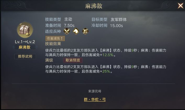 综合评价:由于反击打伤害和前排其实是一个冲突的东西,前排容易血少,血少就打不出伤害。而队友带麻沸散辅助你,其实为了打造一个反伤前排这样代价太高了。所以这个武将个人感觉是鸡肋——食之无味弃之可惜。