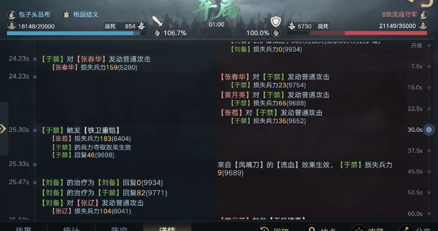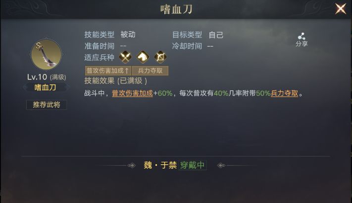 睚眦怒目+70武力,加的是很高的了,配上2.45的武力成长,让夏侯惇有可能成为第一个反伤流武将。然后重点是这个附加效果,大家可以通过我发的图片看到同类型铁甲重凯的反击是能吃到嗜血刀的普攻加成和兵力夺取。所以夏侯惇的反击理论上也能吃到。这样使得反击上限有了质的提升。