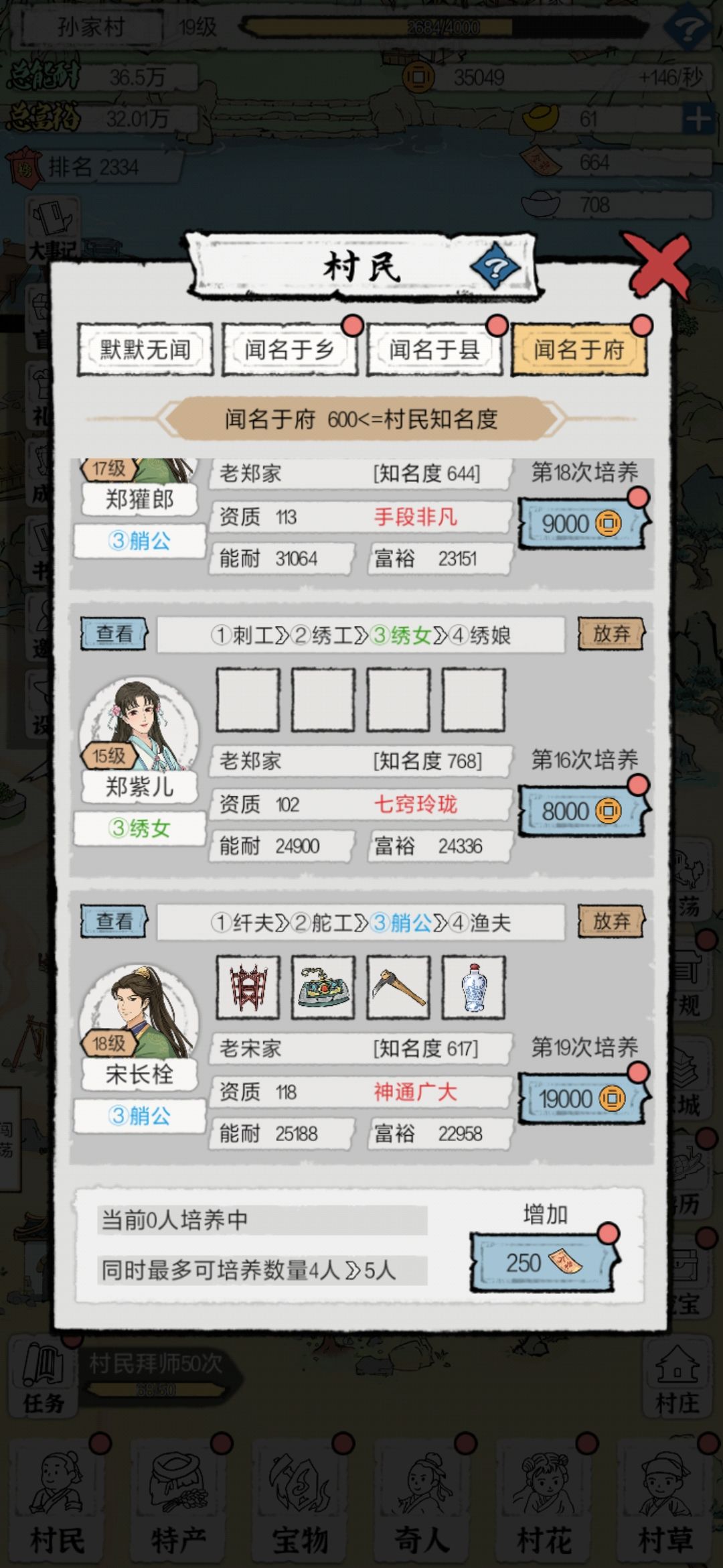 人物尽量咱们选择高质量人类,不要选比较低的人口,而且人物拿下后一定要记得培养,升等级,这是为了提高基础属性,很重要的不要一级也不升,觉得有宝物就行了,宝物是会被带走的!至于钱财我就不说了,里面没什么雷点。