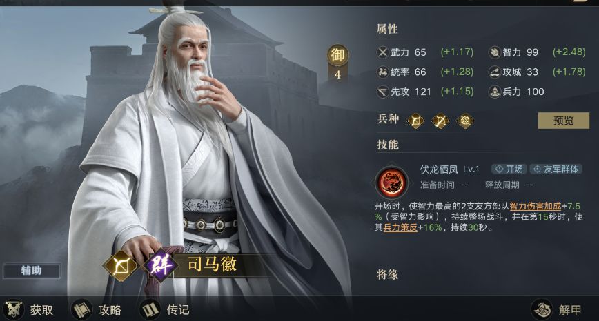司马徽:我智力伤害加成15%。鲁肃:我智力伤害加成30%。