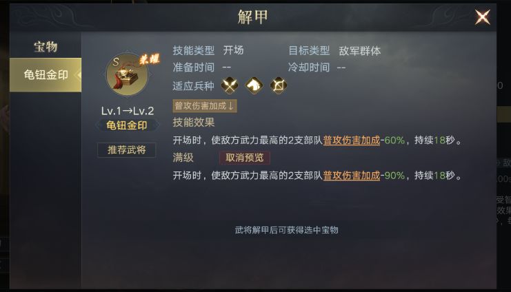 能拆的宝具有龟钮金印,现在没有强力的普攻队伍。并不实用,专门为了打马超带一个宝具性价比非常低。但是考虑到其实相当于18s无视敌方2支最高武力队伍的普攻,还是比较香的。