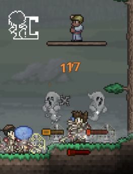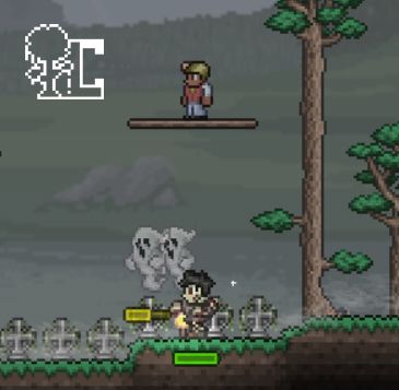 鬼魂:会在地面上徘徊,并穿过实体物块来接触玩家,免疫大多数负面状态。摧毁墓石也会有几率生成一只鬼魂。