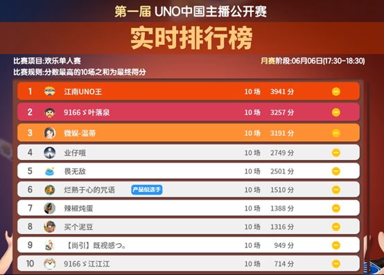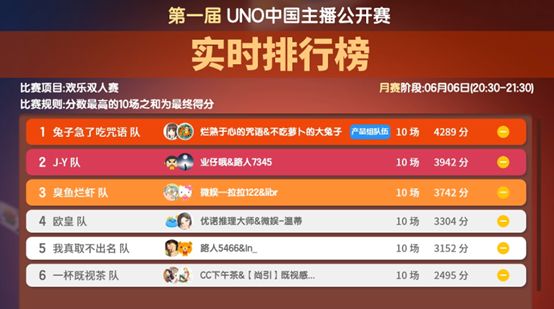 【UNO中国主播公开赛】月赛,大神们的最终战果来了!