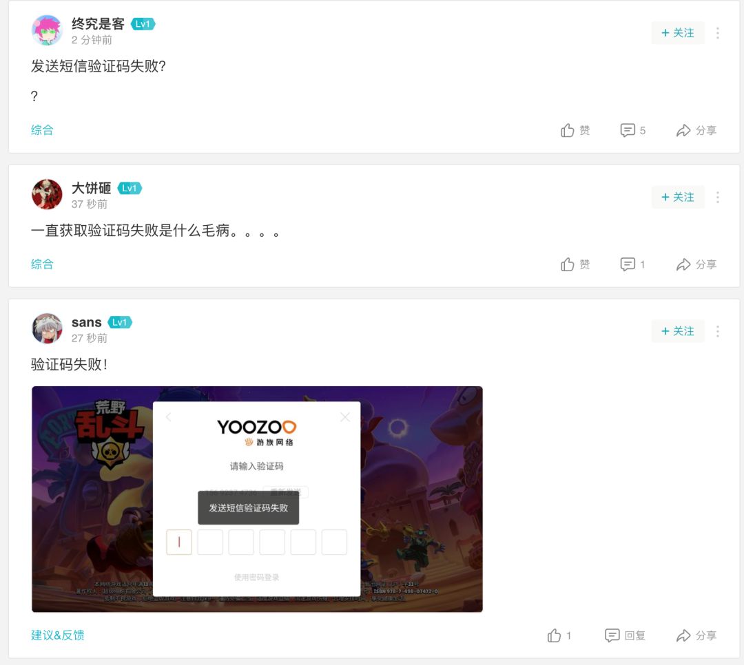 由于服务器异常,导致部分TapTap的斗士出现“发送验证码失败”的报错提示。目前情况已经修复完毕。对于受此影响的玩家,我们深感抱歉。
