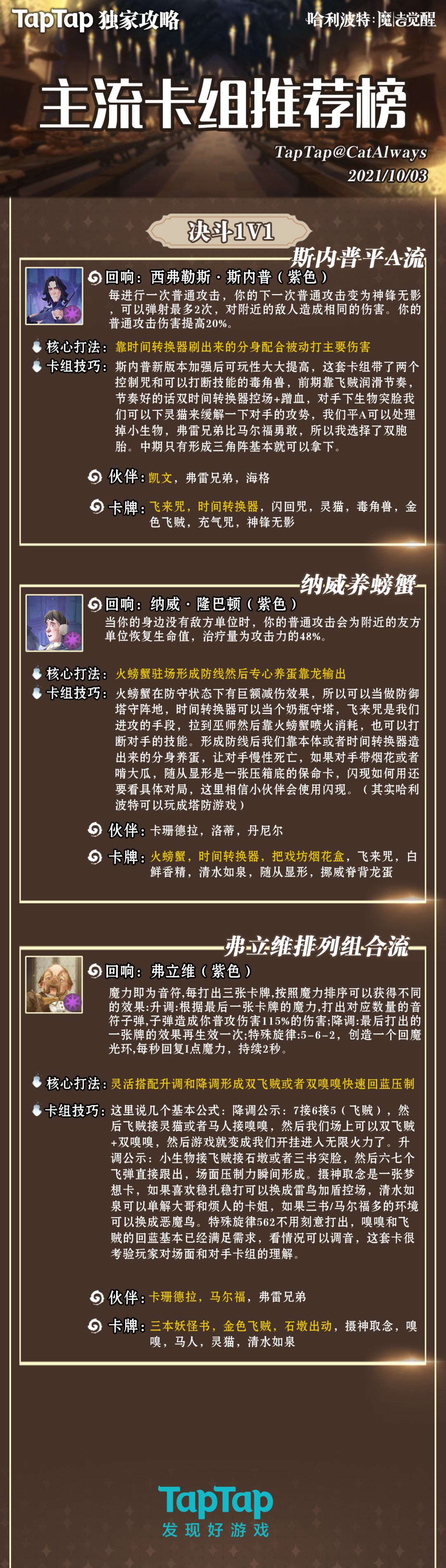 《斯内普平A流》《弗立维新套路》高分段主流卡组推荐🔥(每周持续更新)20211003