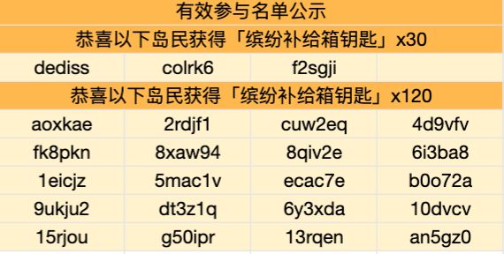 2、每个ID至多获得「缤纷补给箱钥匙」*120,重复发布不叠加计算奖励,请勿刷楼。