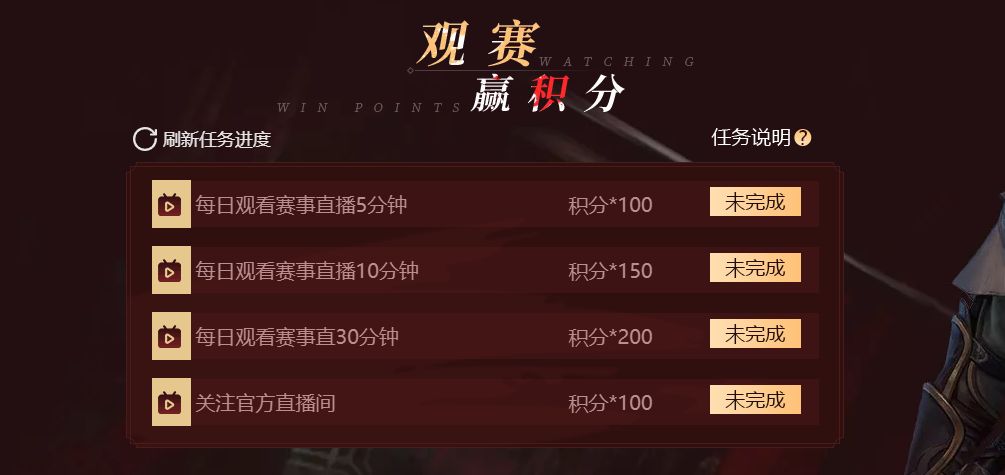 每日在指定平台完成观赛任务,即可根据时长获得相应积分。