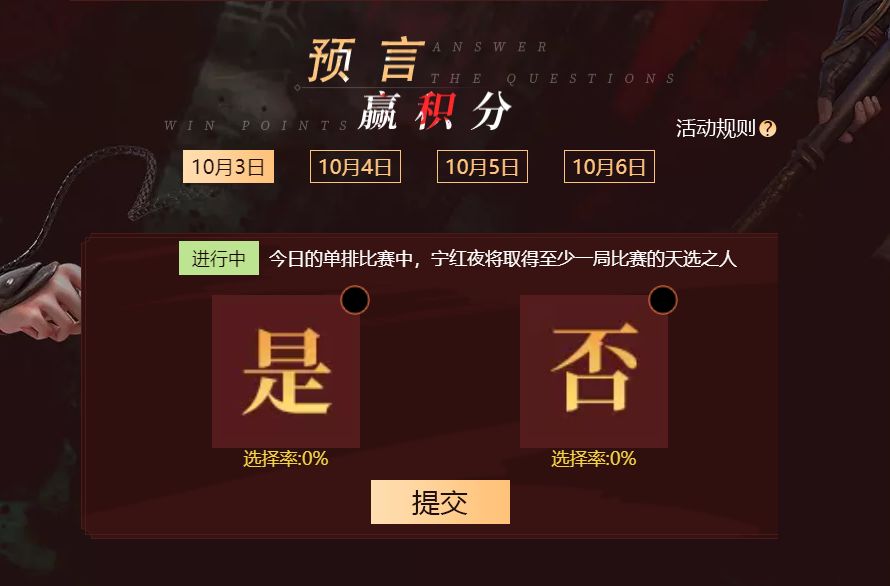 参与方式:每日在网易CC直播、斗鱼直播、虎牙直播平台的官方赛事直播间完成观赛任务,并回答竞猜模块的问题,即可获得相应积分,使用积分兑换奖励。