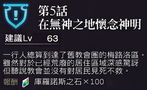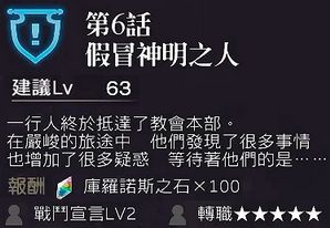 路线:旧教会圈→沙斯拉结晶地带 北部→教会本部→结晶塔→vs晶之精灵Sinus Iridum(锁血50%)→第6话END→古拉尔迪升5星(技能第10话解锁)→副本古西雷开放