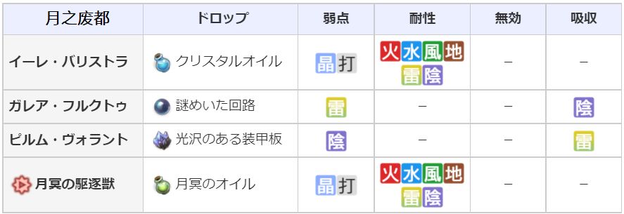 装备月球武器:※速度+30,攻击时附带雷阴晶属性耐性-25%(3回合 发生率50%)。月球防具:MP+40,异常状态耐性+50%。制作素材在月球野图,强化素材在VH失乐之都