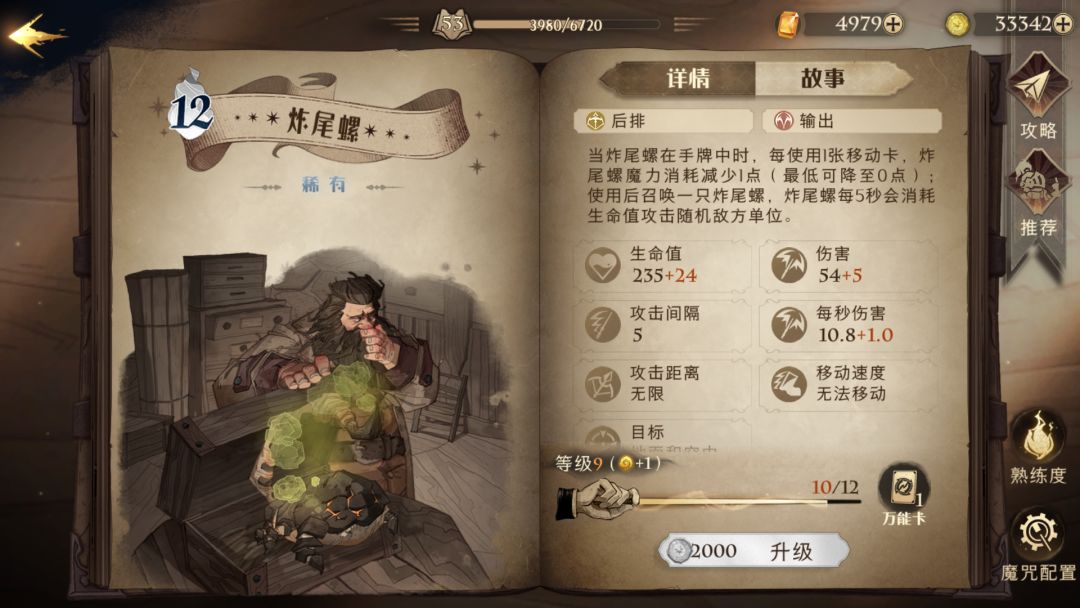 蓝色数字为升调(递增状态),发射和最高费用相同数量的飞弹(伤害为紫1.15/金1.2的巫师攻击力)随机攻击敌人,飞弹的攻击为必中,且不会攻击前面飞弹已经杀死的敌人(有效伤害)。