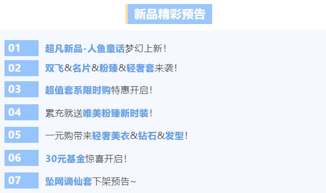 超凡套装-人鱼童话&全新双飞-深海奇境&人鱼名片夹&轻奢新时装将在10月1日上架【藏宝之地-鎏金之庭】,另外人鱼全脸妆容&粉臻新时装&轻奢新时装也将上架在【藏宝之地-银霜之门】噢!为爱化身为鱼的浪漫故事,就等舞者们明天亲自前往藏宝之地体验啦(*^▽^*)!