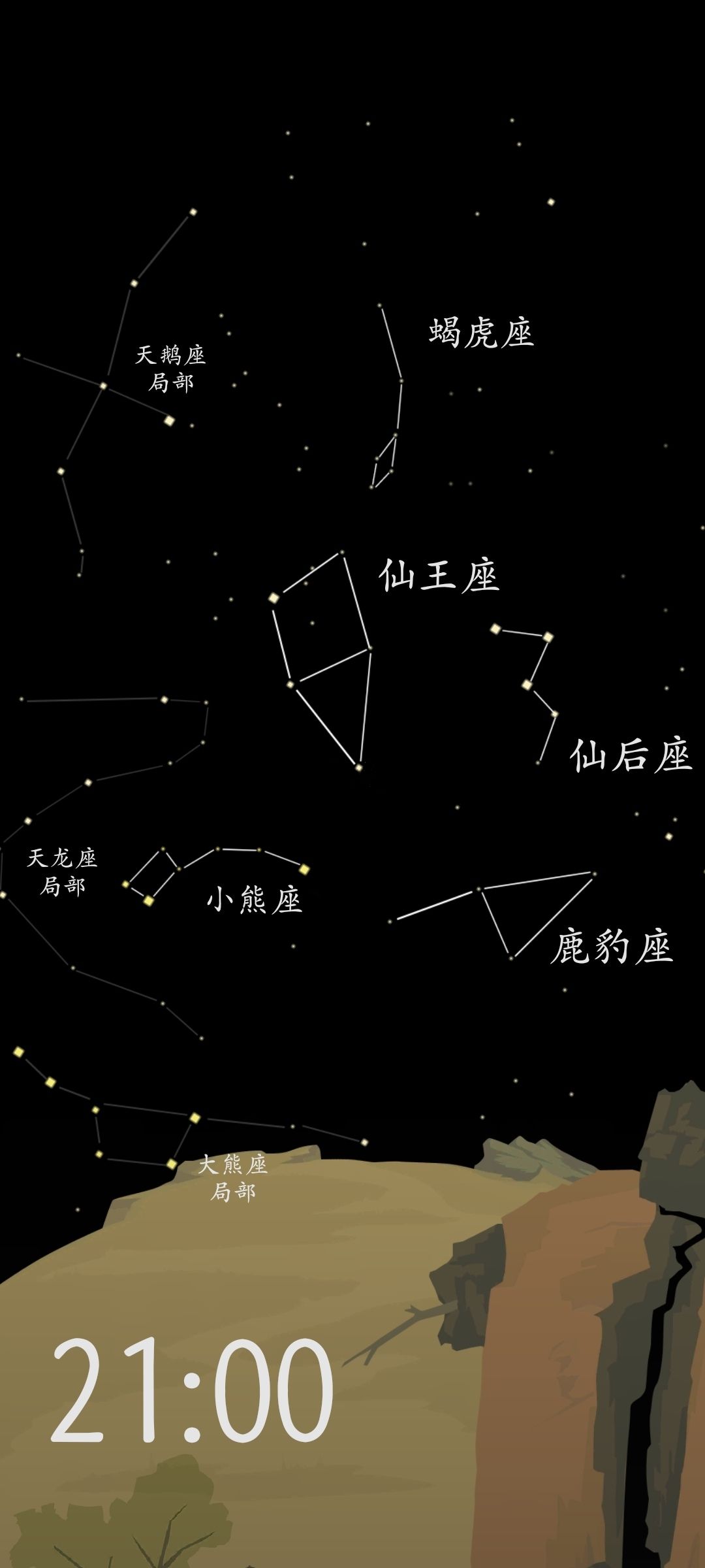晚9:00能收集到的完整星座有:蝎虎座、小熊座、鹿豹座、仙王座和仙后座共计5个星座。