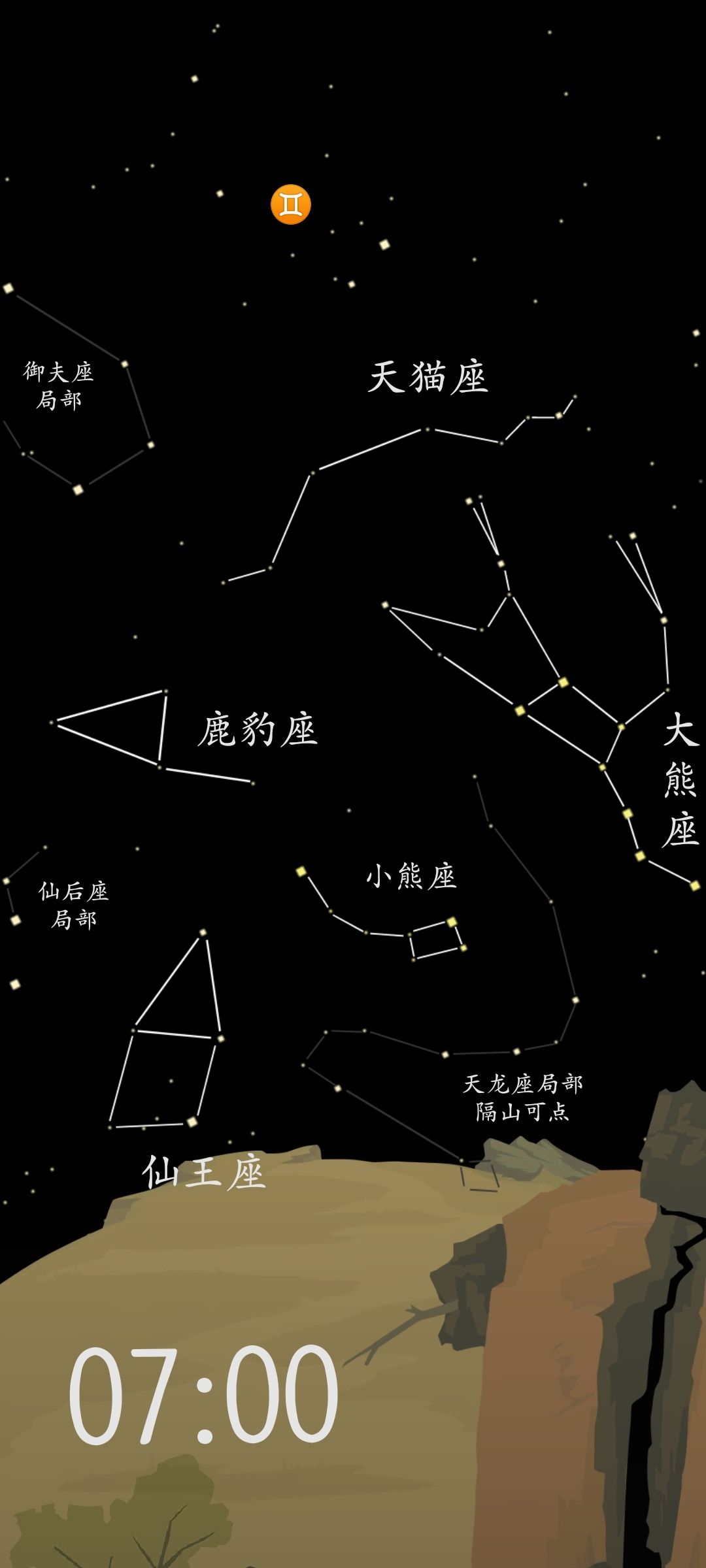 晨7:00能收集到的完整星座有:小熊座、鹿豹座、天猫座、大熊座和仙王座共计6个星座。