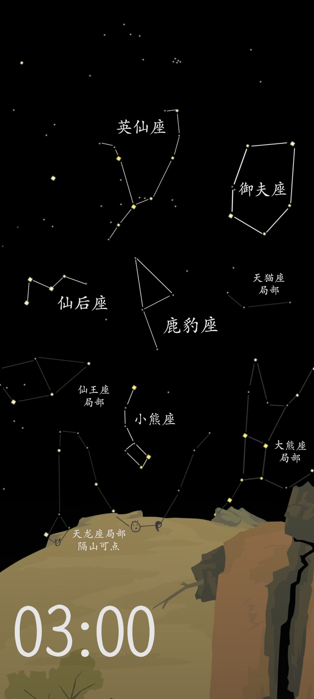 晨3:00能收集到的完整星座有:英仙座、小熊座、鹿豹座、御夫座和仙后座共计5个星座。