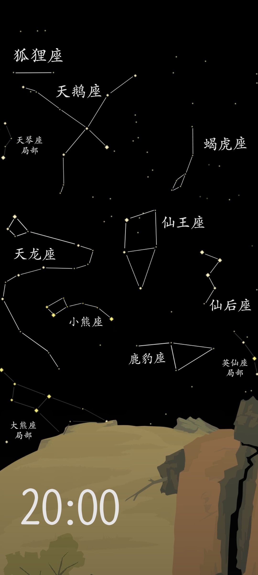 晚8:00能收集到的完整星座有:狐狸座、天鹅座、天龙座、蝎虎座、小熊座、鹿豹座、仙王座和仙后座共计8个星座。